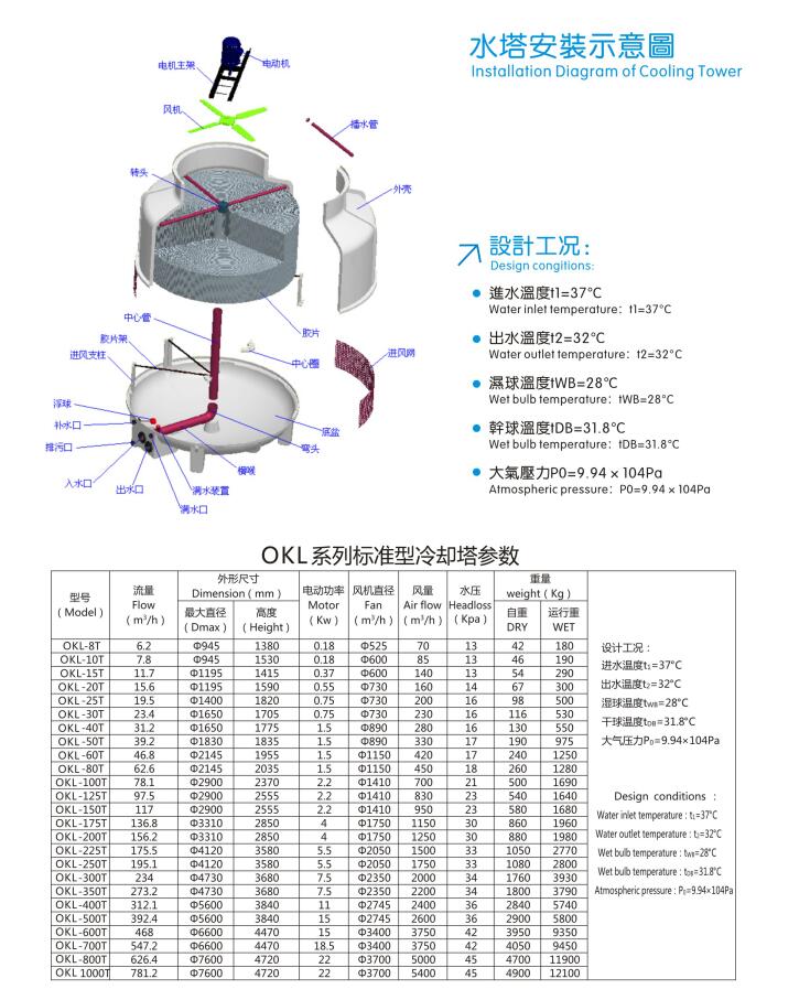 ● 采用最新技術設計,漂水少、噪音低、易保養,冷卻塔構件精心制作,堅固耐用,冷卻效果良好;